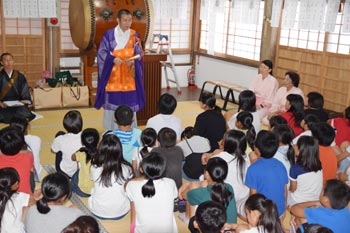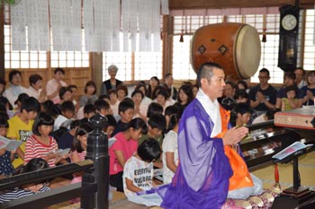 ぼくが3日間の中で楽しかったことは、正座をしてお経を唱えることでした。ほとけの子としてぼくたちは、ほとけ様に見守られて、嫌なことやダメだったことを乗りこえて、立派なほとけの子になりました。今回のテーマ「克」という言葉に向かって頑張ってきました。お坊さんや青年会のみなさん達と楽しい時を過ごしたり、いろいろな人達にスイカやそうめん、ジュースを奉納していただきました。校長先生やお坊さんの先生からは、ほとけ様にどういうお経を唱えるかやお坊さん達の修行の辛さを教えていただきました。また、婦人会のおばさま方のおいしい料理を心を込めておいしくいただきました。ぼくの好きな先生は全員の先生です。優しくされたり、時には注意されることもありました。ぼくは気づきました。ぼくは、お坊さんになろうと決めました。なぜなら、ほとけ様の前にいると幸せな気持ちになるからです。正座をすることもあまり悪くないと思いました。ほとけ様は、ぼくたちが元気に成長してほしいと願い、いつも見守ってくれているのです。自分が悪いことをやってもすぐに心を改めてくれていたのです。お釈迦様の前で自分が成長した事を感じました。だからぼくはお坊さんになろうと思ったのです。将来は本佛寺で立派なお坊さんになりたいと思いました。