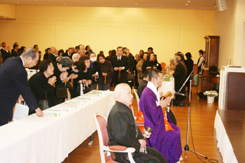 妙善寺檀信徒の皆様にホテルの会場にお集まり頂き、御前様御導師にて追悼法要を致しました。本佛寺の