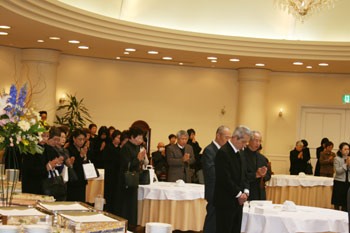 御前様から呼ばれ私達弟子が会場に入りご挨拶(一礼)致しました。 奥様を改めて紹介される御前様。
