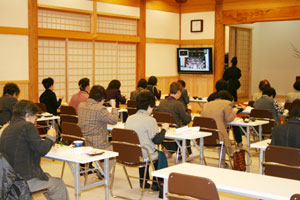 奥様が挨拶をされ、御前様を紹介。講義が始まりました。