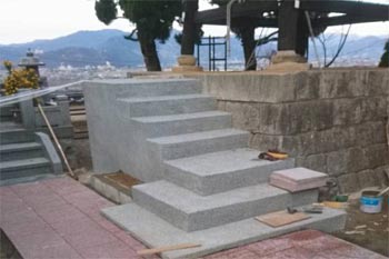 緩やかで広い形に仕上げ、際だつように御影石を使用。