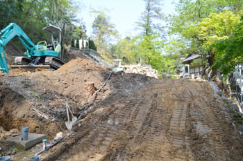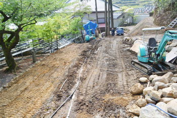 ここを車両入り口とし、まず大木の楠を伐採しました。