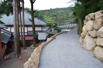 実は、地震と大雨で、石が外れ、崖崩れとなりました。折角の石垣…。残念。