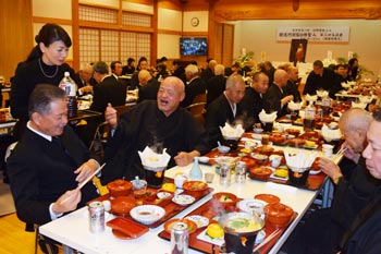 除幕式を兼ねての法要が終わり、あかつき庭園に主管様がお座りになりました。