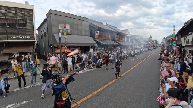 小江戸川越春まつり 川越藩火縄銃鉄砲隊の演武 すぐ目の前で大音響は迫力満点です