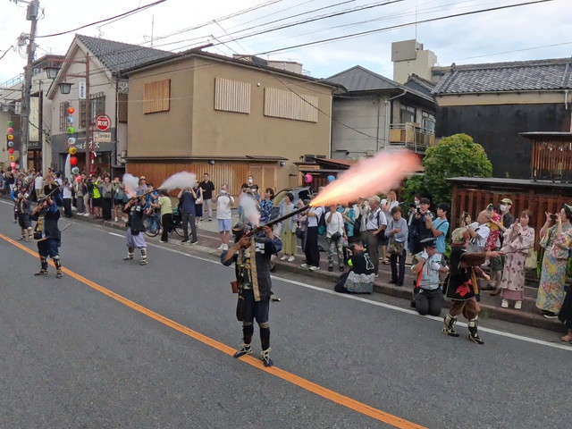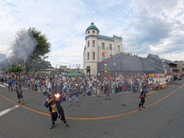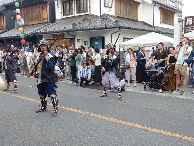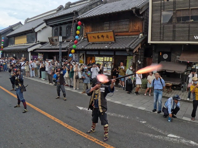 一番街の火縄銃演武 おそらく日本一近くで見られる火縄銃です 春祭り他、不定期