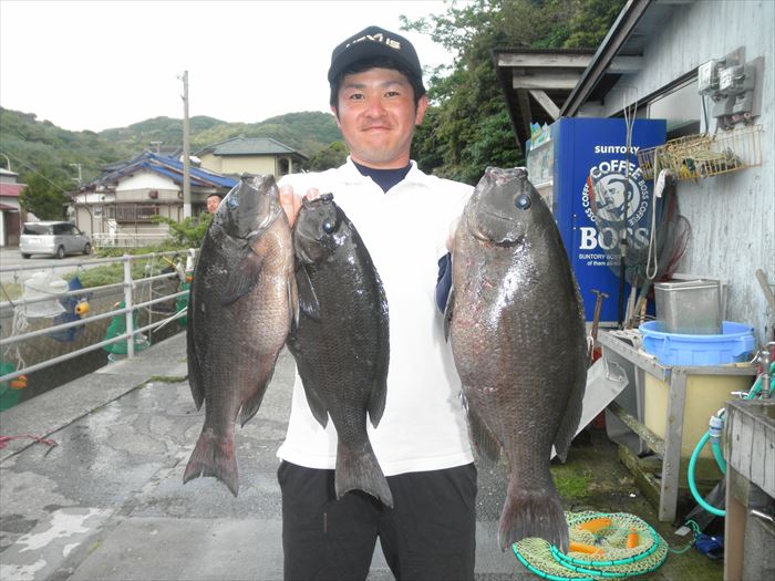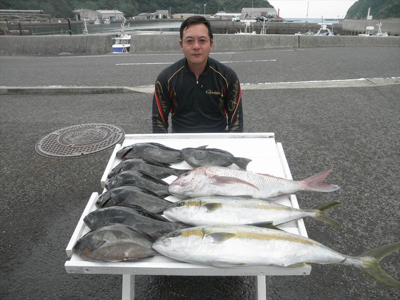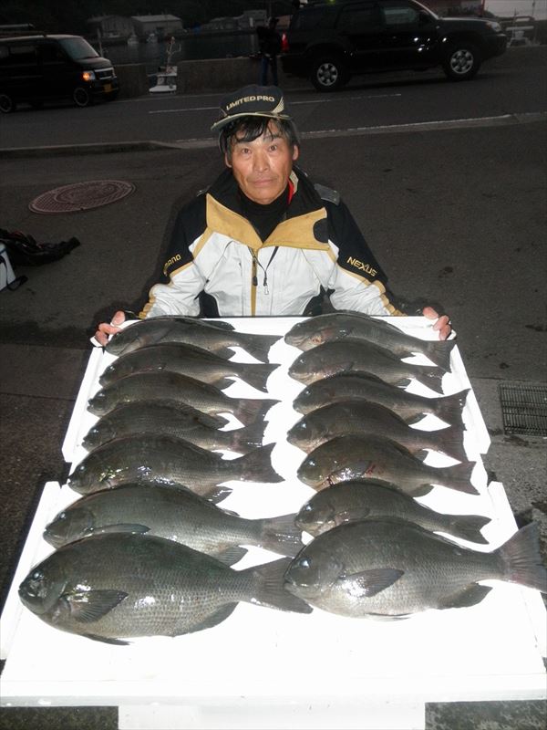 クロ1.3kg〜12尾、イサキ800g2尾 |
