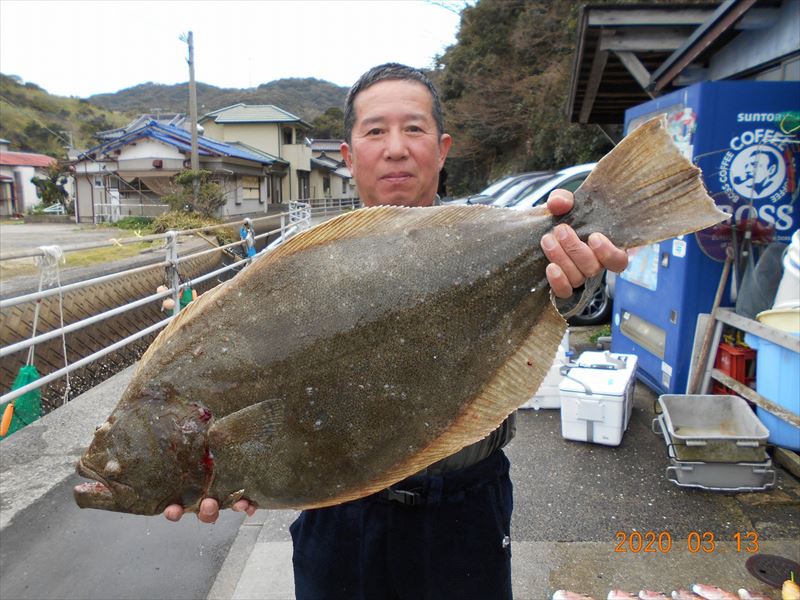 3/13 (野母崎沖 船釣り) 長崎市丸尾さんヒラメ75センチ4.2k 1匹