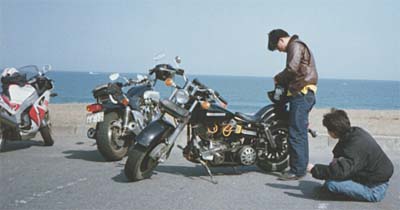 左がかたね。SRで事故って事故成り金となり883を購入。それでは空き足らず、ショベルのFLHに乗り換え、原形を留めないくらいに改造しまくっていました。