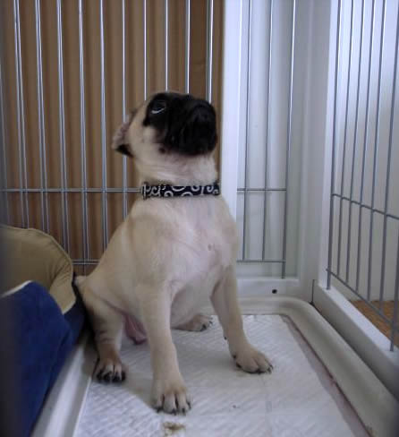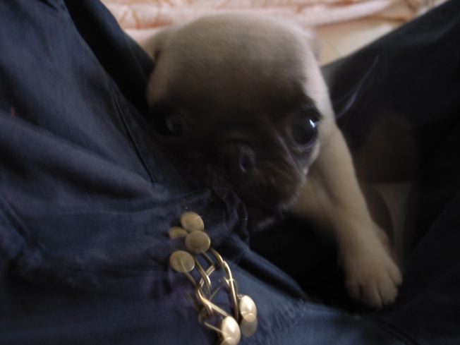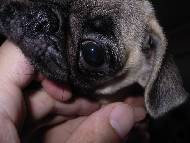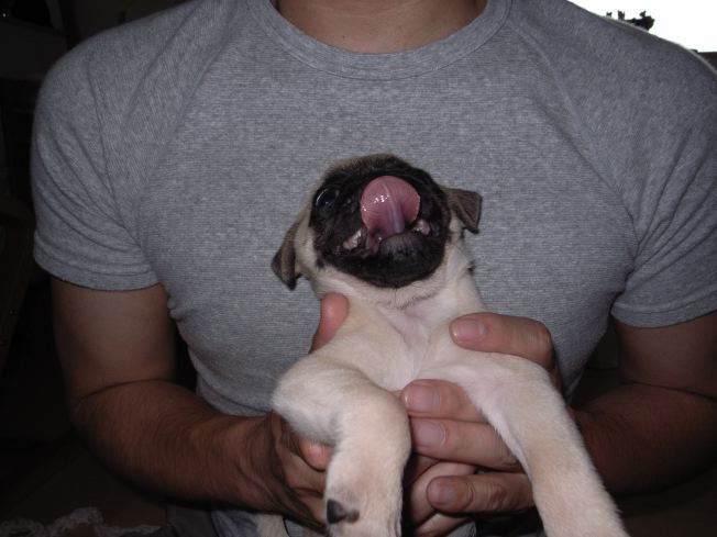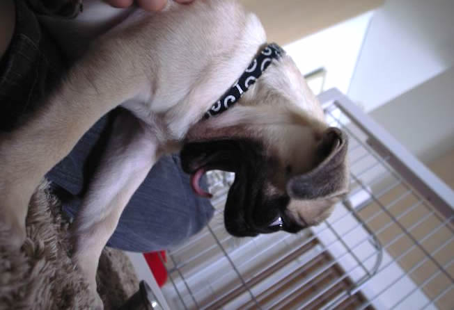 ■黒いなぁ・・・顔(笑)(07/07/03 ) 御存じの通り(って、好きじゃなきゃ知らない)パグには正しい血筋で4種類の被毛に色分けされるようです。が、殆どがフォーン(顔だけ黒い)とブラック(All