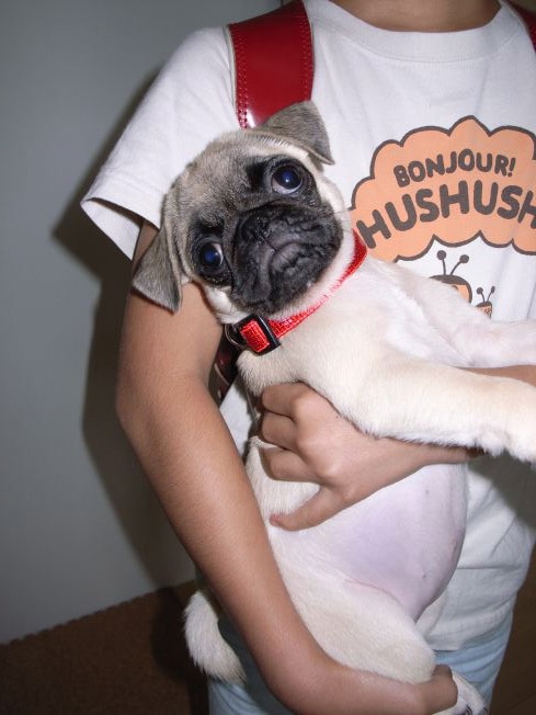 ■ え〜と。今度パグを飼うことになりました。(07/06/19 ) 半年くらい前から娘(Y)が犬を飼いたい!!と言っておりましたが、色々と準備&気持ちの整理をしないとイケマセン。第一、 まだ新築して一年。ミタメ優先のデザインにつき、扉には全く枠がありませんし、もちろん幅木もございません。かじりついたら一発で汚く&補修が大変!最初から犬を飼う設計にすれば良かったのですが、飼う犬によって設計も変わってきますので、ちょっと無理だったかなぁ。。。一応増設出来るスペースが空いていますが、今はミニウサギのmimiが生活しています。どうしたものか!? ・・・と悩みつつ、結局の所一番世話をする妻(以下K)の意見と、娘(以下Y)の本気度を探りつつしばし待つことになりました。その間、雑誌やペットショップに行ったり、、、本当に一緒に生活したい家族となりうる犬を探しました。大丈夫かなぁ・・ しばし時間を空ければ熱くなった気持ちも冷めるのかなぁ・・と思っていましたが、なかなかどうしてガンバリます。そうこうしているうちに、Kが自分のPCで連日連夜ペットショップ探しをしつつ、コレカワイイ、アレカワイイなんて言っています。。。どうやら本気モードに突入したようです!Yよりも買う(飼う)気満々。 結局佐賀県のブリーダーさんから買うことになりました。本日振り込み手続きを済ませてきたようです。配送方法とかよく分からないので、これから相談です。 ■名前はPAMに決まったよ Yが名前を一所懸命決めてました。パコ、ワグ、ポコ・・・どうやら、二文字で“パグ”の響きに近い名前にしようと頭をひねっている様子。『じゃぁ、パムってのはどう?』 と聞くとまんざらイヤそうでもない。。。 ・・・飼うことが決まり、預けていた実家に迎えに行くと、いとこや祖父母にパムに決めた!と報告済みの様子。良かった良かった。。。 |