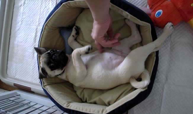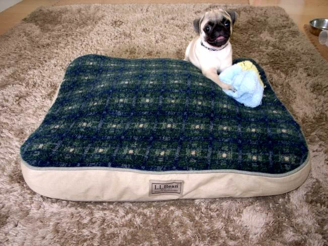 ■DogBed(07/08/09) ちょっと前に流行っていたような記憶を元に、LLBeanのドッグベッドを買ってみました。が、買って早々に粗相をいたしまして、その後、、ニオイをかぐと催すらしい。本人はベッドと思っていないらしく、全然リラックスしない。思惑が外れてかなり残念(・_・、 |