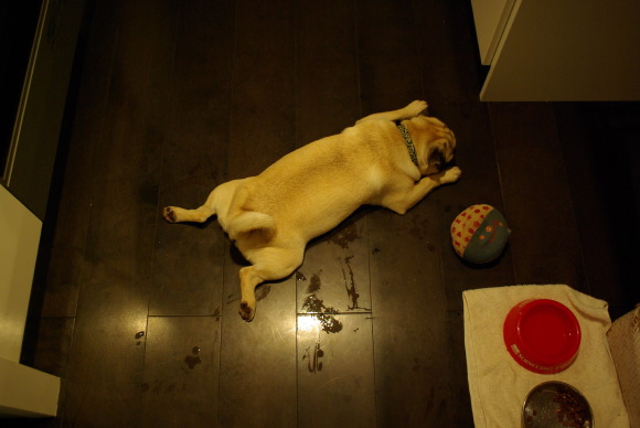 ・・・クンクン泣いているのになかなか出てこない↓ どうやら、狭いラック下、身動きがとれずにいたらしい・・頑張れば脱出出来るのですが、一応助けてあげました(笑) ■Y 昨日40度超の発熱で倒れ込んでしまったY。今日になって熱は下がったもののろくに食事も摂ってないからふらふら。 知力を増やそうと躍起になってろくに運動もしない、ジャンクフードばかり食べている子供とは違うぞ。