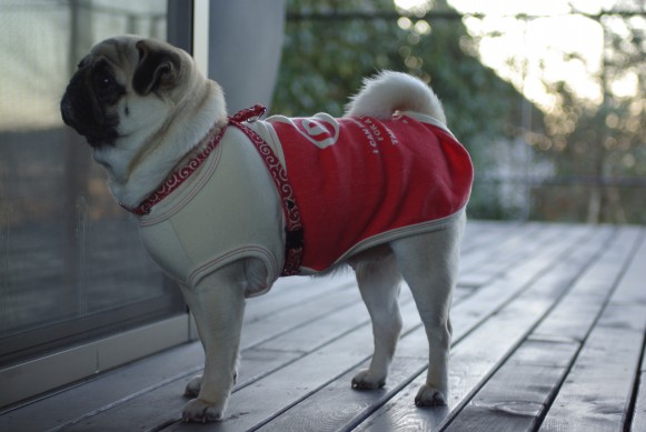 普段洋服を着せることはないけど、朝起きてみたら頂いたスウェットを着てた(^。^)