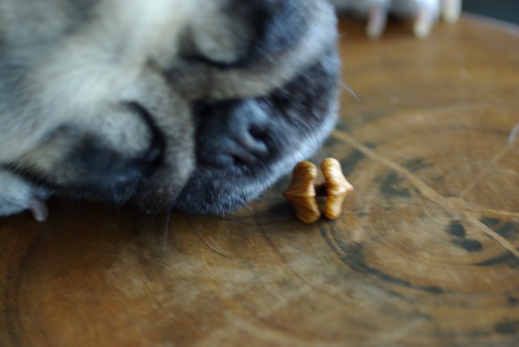 ■回答(09/03/14) ↑受験シーズンなので このテーマ^_^ 答えはクルミです。クルミを見たことのない人はいないと思いますが、殻を割って丸々の形を見ることって無いですよね。 自邸の前のクルミの木。例年台風とか暴風で早くに実が散ってしまうため、中身はスカスカの状態でした。 ご想像の通り、PAMが絡むと↓(笑)