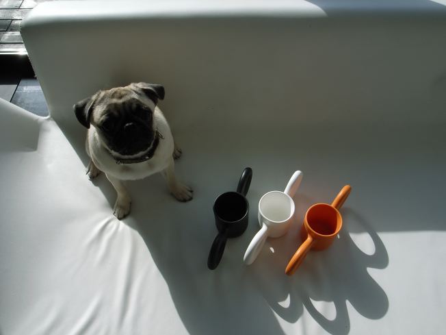 ■だんぼ(07/11/22) Richard Huttenデザインのマグカップです。3人家族なので3色(黒-僕、白-K、オレンジ-Y)
