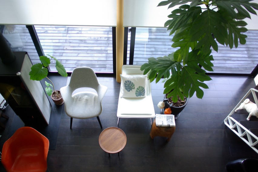 向かって右側がJasper Morrison作のLowPad(ディスコンの白レザー)左側がイームズとサーリネンの合作オーガニックチェアです。 サイドテーブルも活躍の場を与えられて喜んでいる(・・・ように見えます)^_^ |