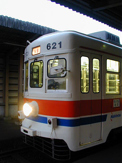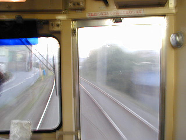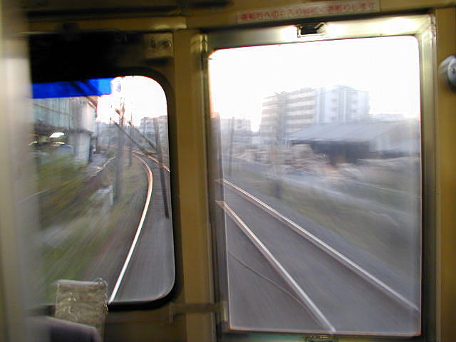 621号に乗車し、先行する直方行きを撮影してみました。ポイント開通待ちで停車中です。