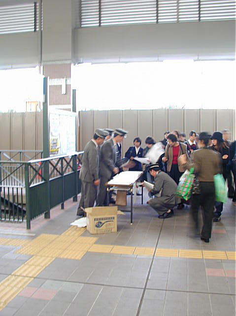 今日も陣の原駅は撮影者が多かったです。盗難?にあった駅名表示板は特製(カレンダーの裏)の物になっていました。