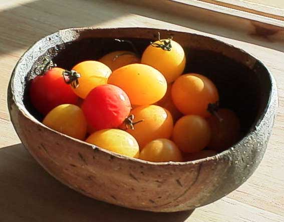 毎年5月に笠間焼きのお祭りに行きます。 今年は「つがい元年」なのをいいことにいろいろ買い込む買い込む。 これは可愛いオブジェを売ったりしていたお店の前で 一つ千円のかごに入って売られていた物。 オブジェはとても手の届かない値段だったのでこちらを一つ。 なんかちょっといれたりするのに良いかも。と思って買ったらこれが大当たり キャンディーやお菓子を入れたり、お総菜を入れてみたり。 色合いが暗いので色鮮やかなものがよく栄えます。レンコンのサラダとか白い物もgood。 よく見たらスイカ柄です。 |