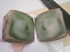 ![]() これは、数日後、型だしの時の写真。紫だった色は茶色に。と思ったら切ったら中は緑。おいおい。 そして、ベーグルに戻る。 さつまいもベーグルの方は、さつまいもを混ぜ込んでしまったためか 発酵が遅かったのですが、いつもの倍以上の時間をかけて一次発酵。 不安は残りますが、ふくらまないパンも食べる事の出来る人間ですから それはそれとして、そのまま行程を進めます。 生地を6等分して、ベーグルの形に作り、二次発酵。 ここでは、発酵を加味して、穴は大きめに。えいやえいやと生地を伸ばして 大きめの穴のベーグルを作ります。 二次発酵の間に、ずっと作りたかったバスボム作り。 これからは湯船が恋しい季節ですから。 ずっと前に母が大量にくれた乾燥ローズマリーを入れて シンプルにラベンダーとローズマリーのエッセンシャルオイルを 入れて、重曹とクエン酸、コーンスターチを混ぜて、おにぎりのように手で形作ります。 あっという間に出来上がり。引越以来、これを入れたくて洗面所に空のまま並べていた ガラスの容器に入れておしまい。 ええ。半年の間、空の容器を飾っておりました。 ![]() そして、ベーグル作りは最終段階。 二次発酵の終わった生地を湯にくぐらせます。 ほんとに、これでいいのかと小首傾げながら、 ぐらぐら沸いている湯に生地をつっこんでいってそれを素早く オーブンへ。 頼む、頼むから、あのもちもちのおいしいベーグルになっておくれ。 ダイニングテーブルの上は、図書館から借りてきた本や、自分の愛蔵本が 並んでおります。 パンが焼けるのを待ちながらお茶を入れて、 本をぱらぱら。次は何をしようか。 あれやこれやと、本を見ながら至福の時間を過ごしていると、相方起床。 普段は、もっと早い時間に声をかけるのですが、今日はあえて、寝るだけ寝せておいたのです。 さすが。もう昼ですよ。昼ご飯の時間ですよ。 そしてタイミング良くベーグルが焼き上がりました。