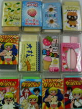 左から ブルーベリー いちごのかおり グレープティー・オレンジタルト コーラのかおり ヒノデワシ社 ¥100+税 |