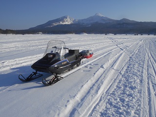 2014/2/3 朝、土湯温泉の温度計が10度になっていた。土湯峠も道路には雪がない。氷に乗れるか心配だったがなんとかポイントまでモービルで行くことができた。今日も18mに入りました。朝から好釣でだんだん入れ食いになり、誘わなくても釣れる。11時カウントで361匹。今期、ドームと氷上合わせて一万匹達成。その後も好釣だが、1時ごろ森のうたのご主人が氷上が融けてゴチャゴチャなのでモービルを陸まで持っていったほうがいいということで、モービルを陸まで持っていって、800m歩いて戻ってきた。釣りを再開して3時で738匹でした。画像は水たまりに映った逆さ磐梯山です。 |