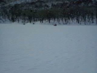 | 2009/1/12 | 岩部ダムに岩部の主さんと行ってきました。氷は真氷7〜8センチぐらい。しっかりしています。ところが当たりがありません。今日、氷上にいた人たち、誰も当たり無しのボウズでした。ただ魚探には、反応があるので今後に期待。できるかな?。 |