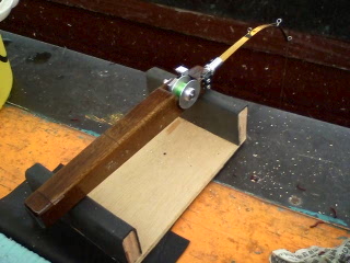 2009/12/14 電動の練習にやまぐっちさんに行ってきました。なかなか渋く80匹でした。トップは120匹。 糸をクリスティアPE0.3に巻き替えたところ、ライントラブルがほとんどなくなりました。2段オモリもOKでした。竿置き台を作成して使ってみたら非常に良好でした。後は台の高さ調整が必要です。 |