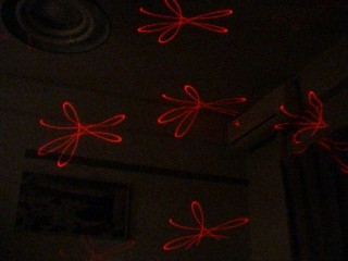 レーザー光は単一波長で、コヒーレントである。 それは人間にたとえると、歪みがなく純粋な心を持ち、迷うことなく一つの信念をどこまでも貫き通すかっこいい奴・・・ と、そんな話はいいとして、 レーザー光を使ったイルミネーションはご存じでしょう。 光源を素早く動かすことによって、目の残像効果を利用して壁などに模様を描くあれ ですよ、あれ。 そんなかっこいいイルミネーションのパーソナル版を購入しました。 その名も「Laser Disco」 |