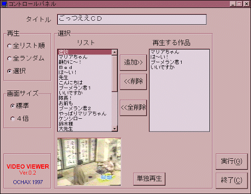例えば、AVIファイルを集めてお気に入りのコレクションを作った場合などに、この「VIDEO VIEWER」を使えば、整理と鑑賞に役立ちます。