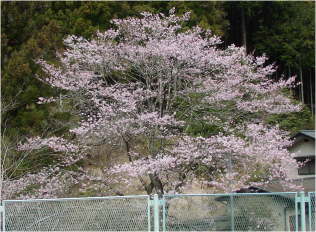 ソメイヨシノではないね。ピンク色が濃くてきれい。エドヒガンかな。
