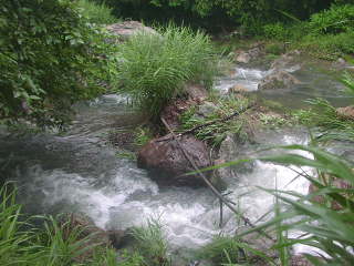 ● 台風3号の大雨の翌朝です。「裏庭」の中洲が水没しています。