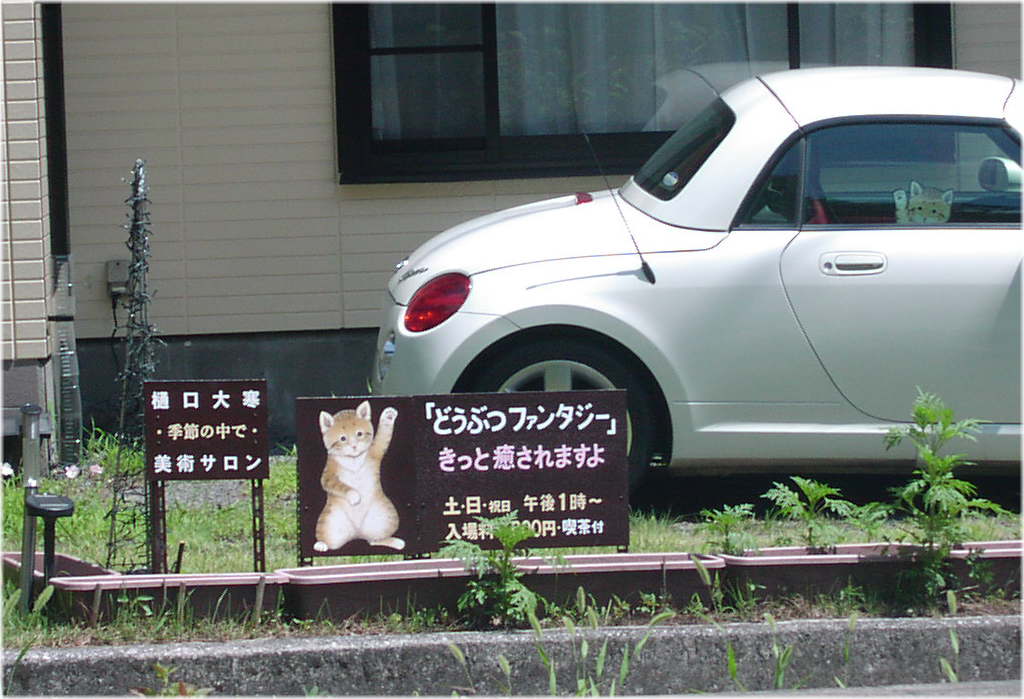 車のウィンドウにも飾り招き猫がいるんですよ。 (2017.7)