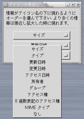 アイコンの下に表示するファイル名以外の情報項目をここではアイコン見出し(Icon Captions)と呼びます。