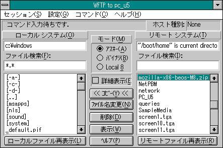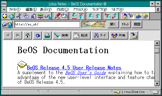 ここではWindows3.1からのBeOS接続環境をちょっと見てみましょう。 (1)Webサーバアクセス ノーツ内蔵ブラウザからBeOSのWebサーバ(Poorman)をアクセスしてみました。 (2)ftpサーバアクセス BeOSのftpサーバをアクセスしてみました。 (3)BeOSへのtelnet