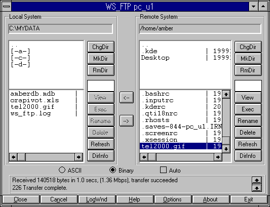 尚、Linuxから日本語を送信するとWindows3.1側で文字化けしてしまいました。