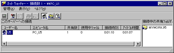 またネットウォッチャを使えば自分のマシンの共有リソースを使用している他のマシンを調べることができます。