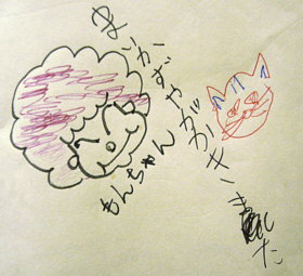 はぁ〜い串カツは野菜も一緒に食べられてヘルシーですぅ〜 お馴染みニャロメですねぇ〜 御来店のたびに書き込んでくれるまさき&なぎささん♪
