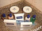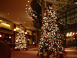 | ヒルトンのロビー。かなり巨大なツリーが! | お部屋はゆったりしていて良い感じ〜 | 洗面も広くて機能的だね〜 | アメニティも全て揃っていて文句ナシかな〜 |