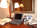部屋に戻りネットへ接続。ヒルトンはLANカードを持参していれば、ヒルトン内のLANに乗ることができるみたい。持ってくれば良かった〜!けど、今回のアメリカローミングはASAHIネットなので、日本国内で繋ぐのと一緒。追加料金なしなので、かなりお得ですわ。速度もAOLよりも速く、快適でしたわ〜 で、今日はちょっと夜更かしをして、就寝。