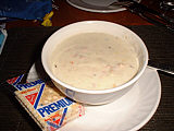 | もちろんコーヒーメーカーも常備。さすが! | PCデスクもあり。カードがあればLANも使える! | ボストン名物クラムチャウダー まったりしてたよ〜 |