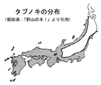 それに対して、タブノキでは夏の暑さ・長さよりも、冬の寒さの厳しさが分布限界を決めているわけで、このような例はシイやカシなどの照葉樹にみられます。