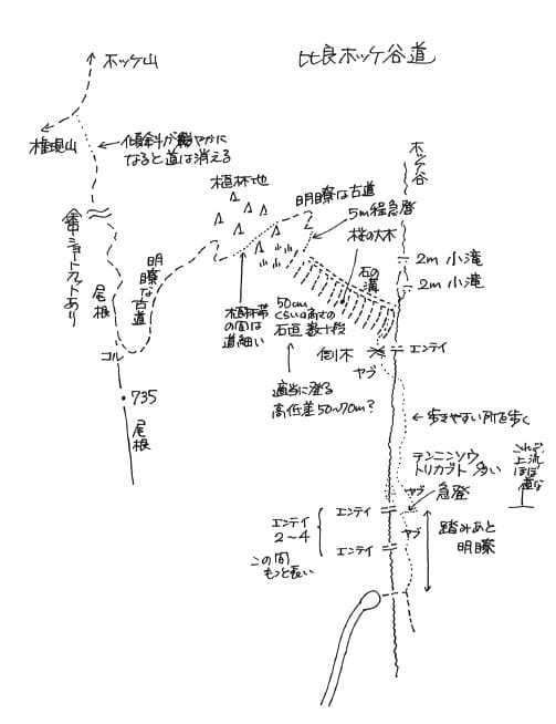 比良山オリジナルルートマップ/ホッケ谷道(ホッケ谷入口〜縦走路)手描きマップ
