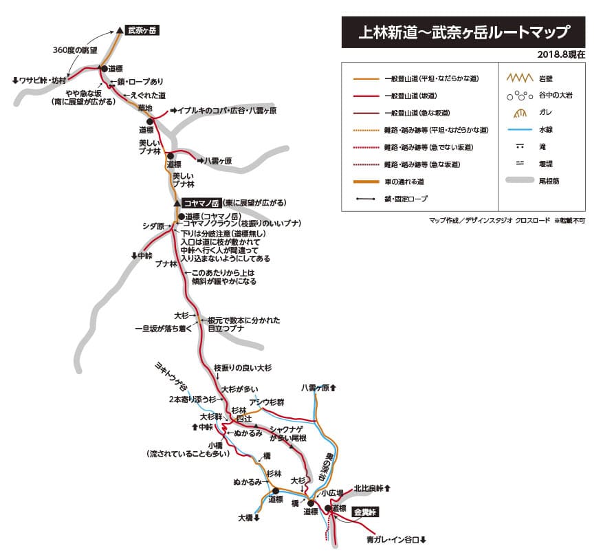 比良山オリジナルルートマップ/上林新道(金糞峠〜コヤマノ岳〜武奈ヶ岳)