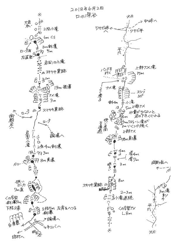 比良山オリジナルルートマップ/口の深谷遡行図(明王谷出合〜ワサビ平)手描きマップ