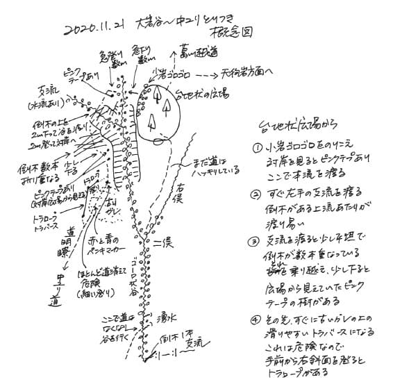 比良山オリジナルルートマップ/中ユリ取り付き(葛川越道との分岐周辺)手描きマップ