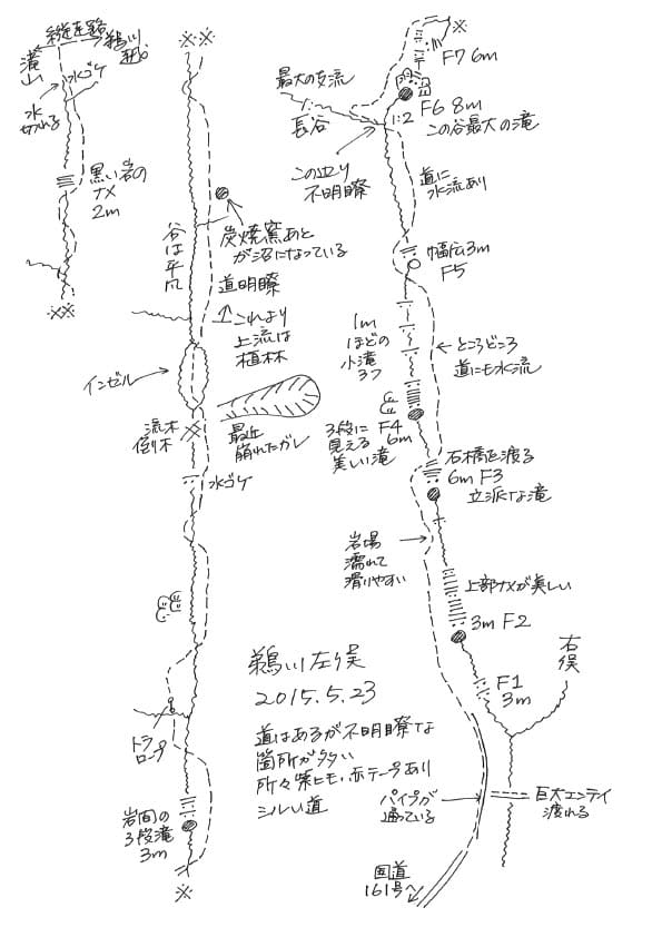 比良山オリジナルルートマップ/鵜川左俣(二俣〜縦走路)手描きマップ