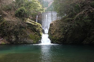 灰屋川本流に落ちる2〜3mほどの小落差の滝だが、滝壺の規模には目を見張るものがある。
