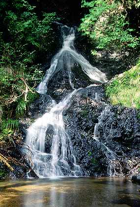 下流側にあるこの滝は2段になったナメ滝(斜瀑)で、滑る落ちる水流は変化もあって見飽きることはない。